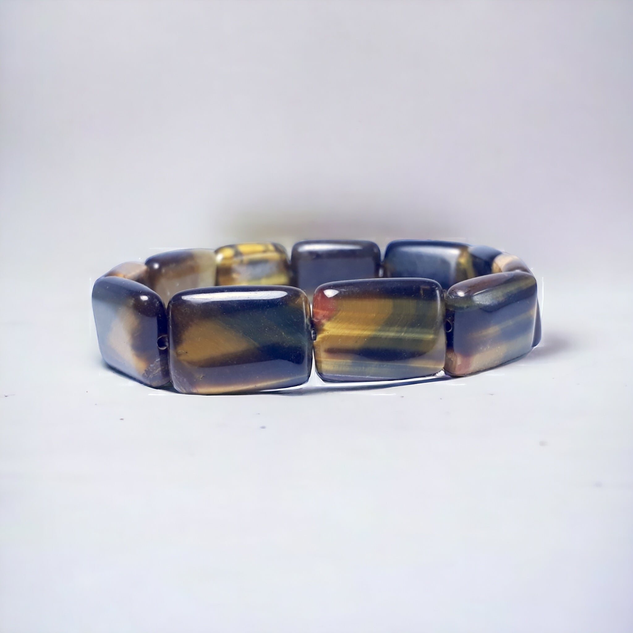This exquisite bracelet features premium 18x13mm natural Black Yellow Tiger Eye beads. Known for their striking combination of deep black and vibrant golden-yellow hues, these Tiger Eye gemstones are revered for their protective and grounding properties. The larger, elongated beads create a bold and sophisticated design, making this stretch bracelet an impressive accessory for any occasion.