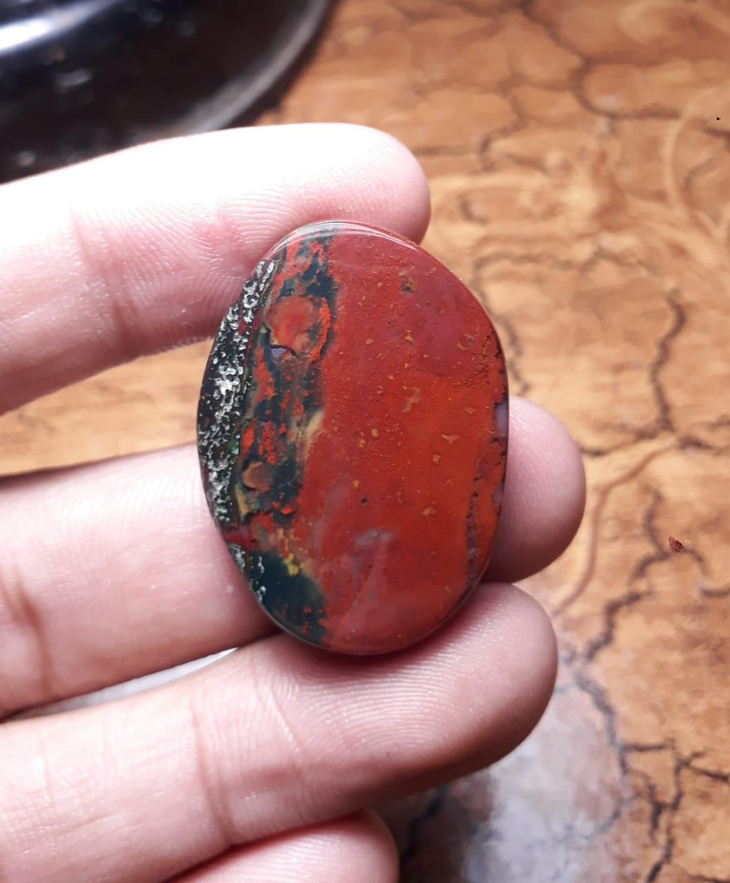 Blood Stone has the benefits of aiding in circulation and supporting healthy blood pressure. This gorgeous natural Blood Stone is perfect for pendants and other jewelry designs. Measuring 32.7mm by 23.8mm, this Blood Stone offers numerous benefits, including improved circulation, enhanced creativity, and an overall sense of balance and harmony.