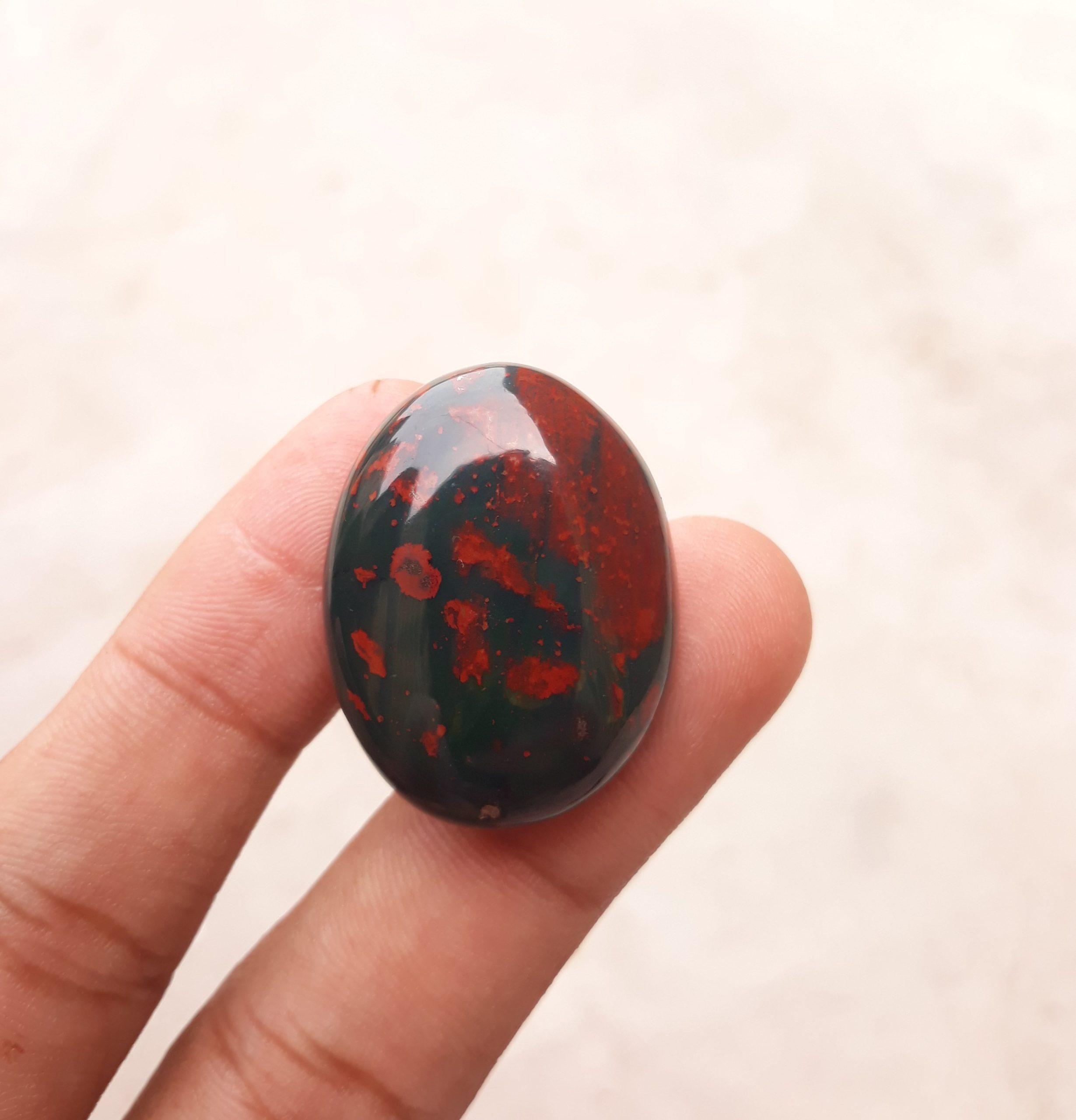 This Natural High Quality Blood Stone Heliotrope is a stunning and durable gemstone. At 33mm x 26mm in size and with naturally robust qualities, it is an ideal choice for jewelry and collectibles. This royal gemstone is a great gift for any occasion.
