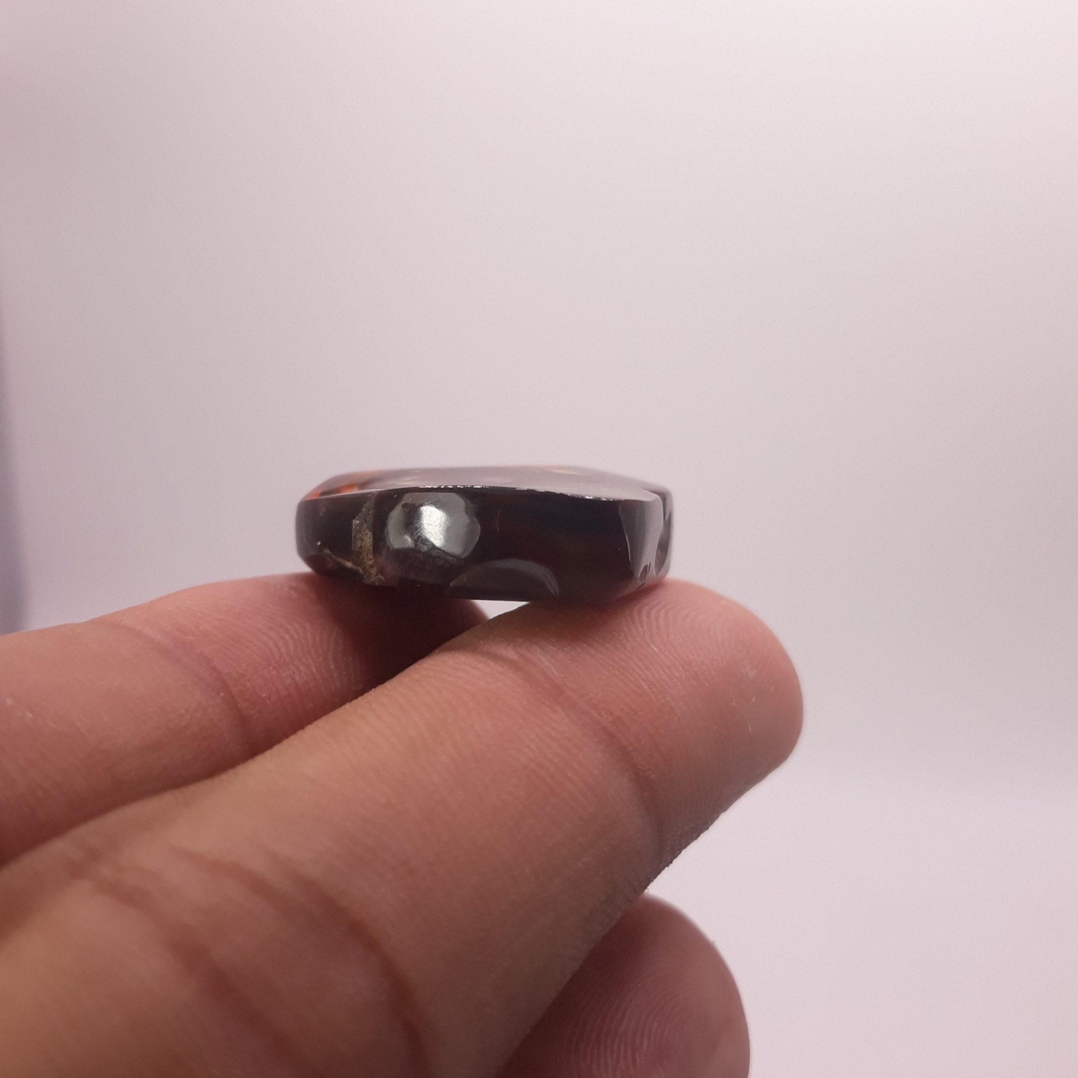 This unique Mexican Fire Agate cabochon boasts remarkable fire and color. Its raw and polished finish makes it rarer and more precious than diamonds, with beautiful rainbow hues and dimensions of 22x23.2mm. An ideal choice for a one-of-a-kind gemstone.