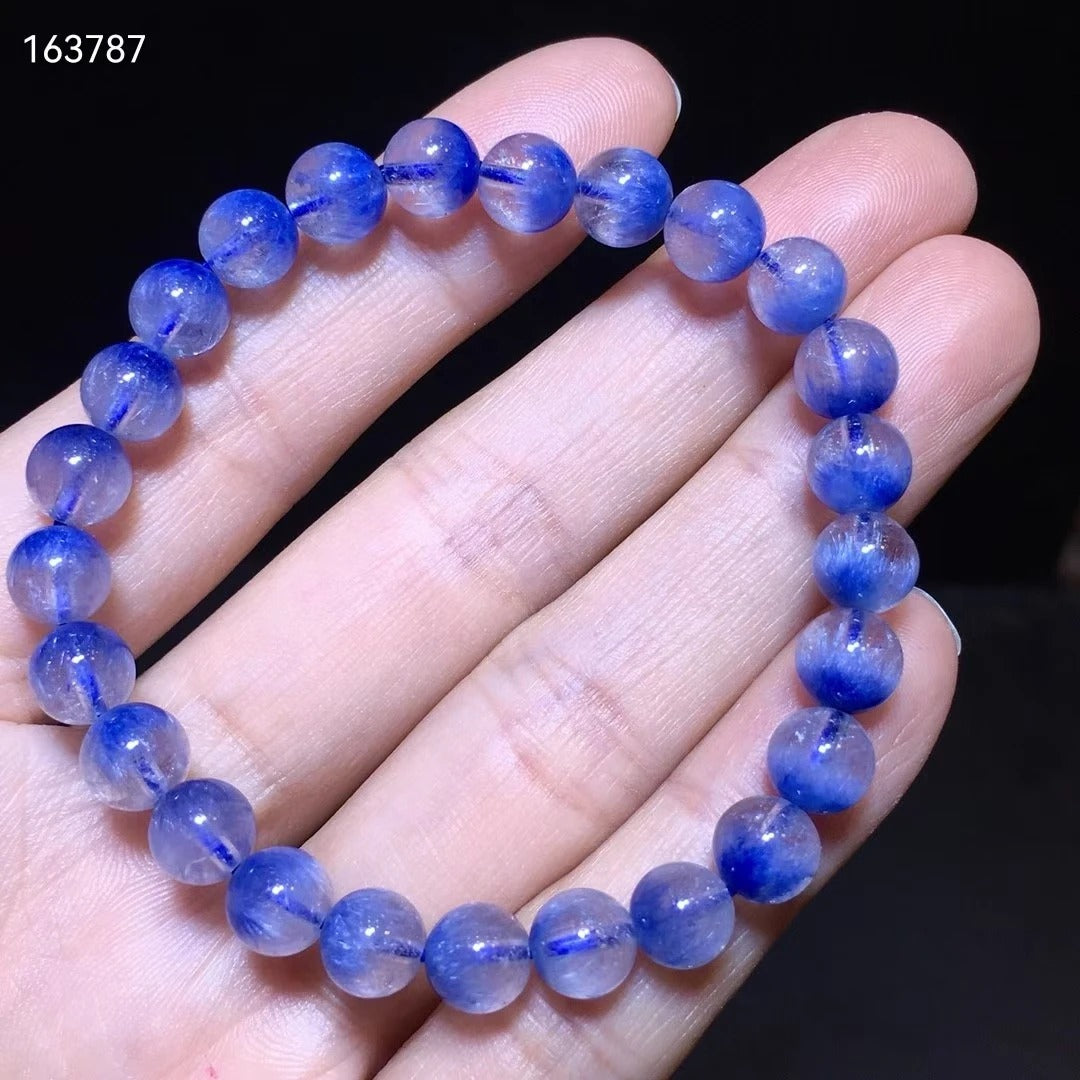 This Natural Blue Rutilated Dumortierite Quartz Gemstone Bracelet is the perfect accessory for any look. Crafted with natural gemstones, its 7.3mm size ensures a sleek and lightweight feel that is comfortable for all-day wear.