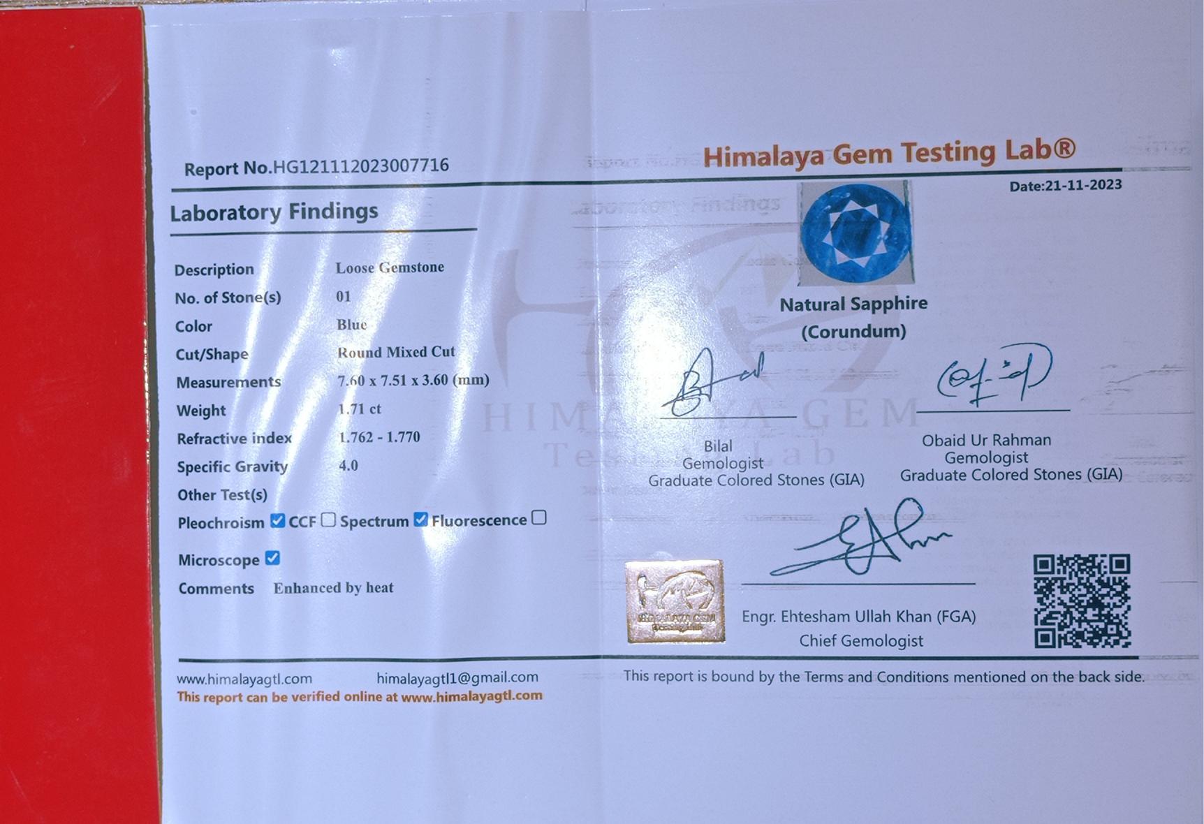 ياقوتة سيلانية معتمدة 1.71 قيراط للبيع - ياقوتة زرقاء طبيعية - حجر بخت شهر سبتمبر
