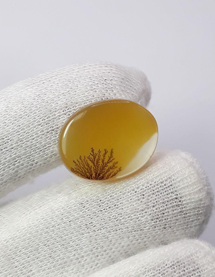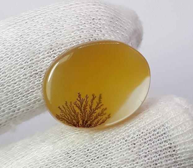 يتميز هذا العقيق الشجري الطبيعي (شجرة العقيق) بلون العقيق العسلي مع نمط فريد من نوعه، مما يجعله إضافة جميلة لأي مجموعة. يبلغ مقاسها 21 × 17 ملم.