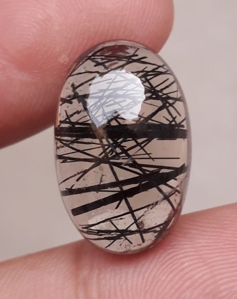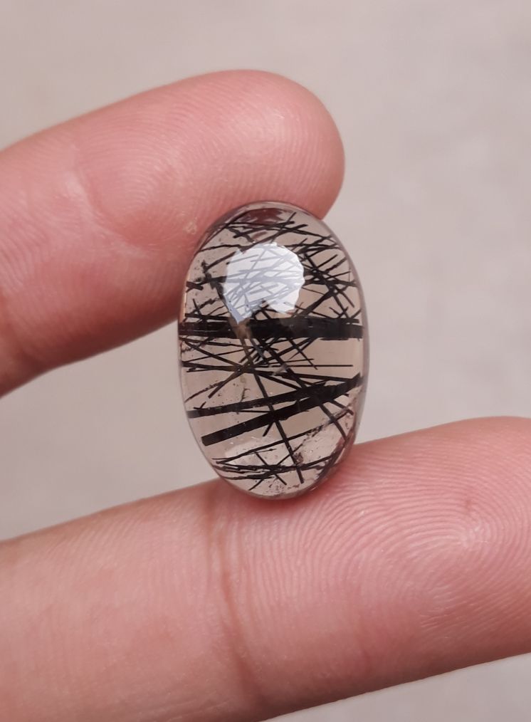 15.3 قيراط كوارتز أسود متورم - كابوشون كوارتز روتيل أسود - كوارتز متورم -21x13.5x8 ملم