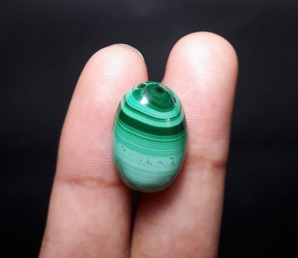 كريستال الملكيت هذا عبارة عن كابوشون جميل من حجر الملكيت، مع أشرطة ودوامات فريدة من نوعها. الملكيت ليس جميلًا فحسب، بل إنه معروف أيضًا بخصائصه العلاجية، حيث يساعد في إبراز المشاعر وتعزيز الحدس والقوى النفسية.
