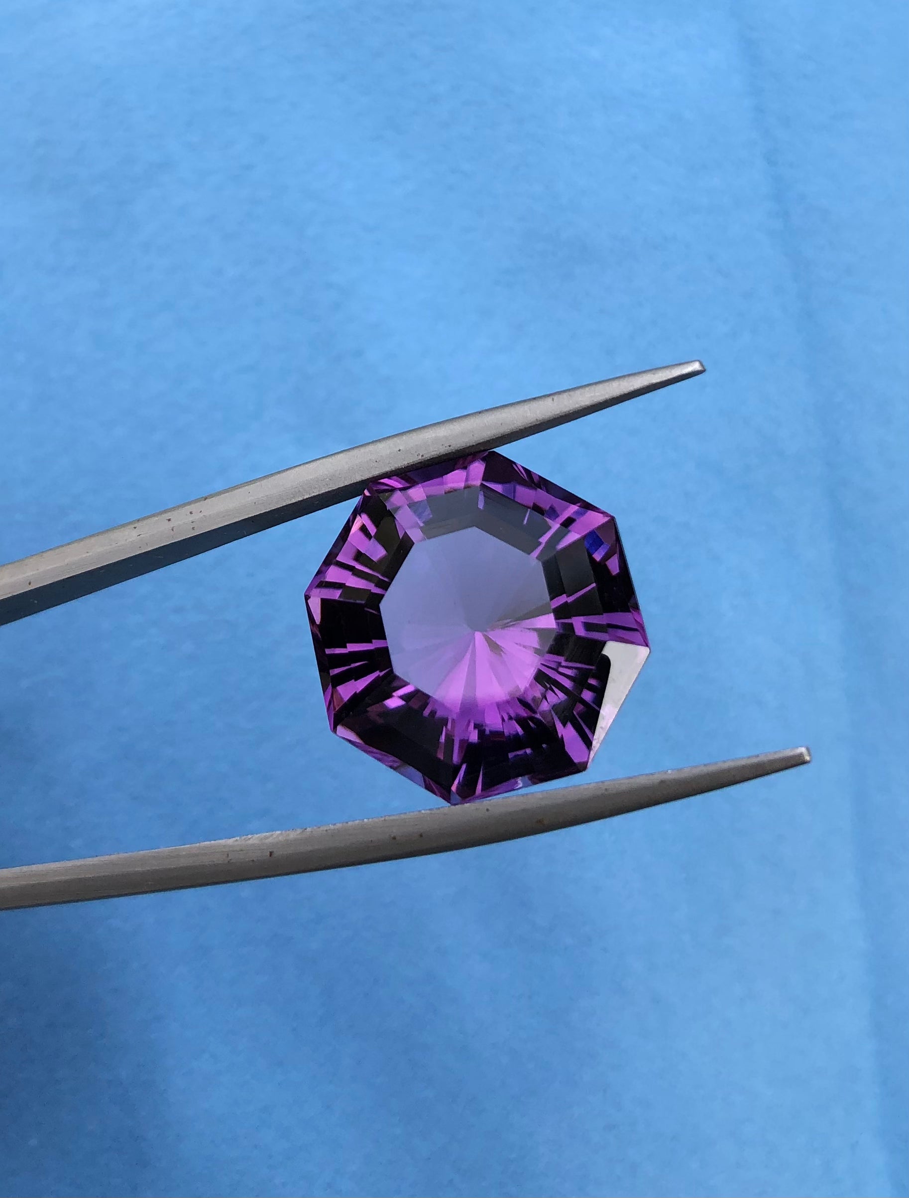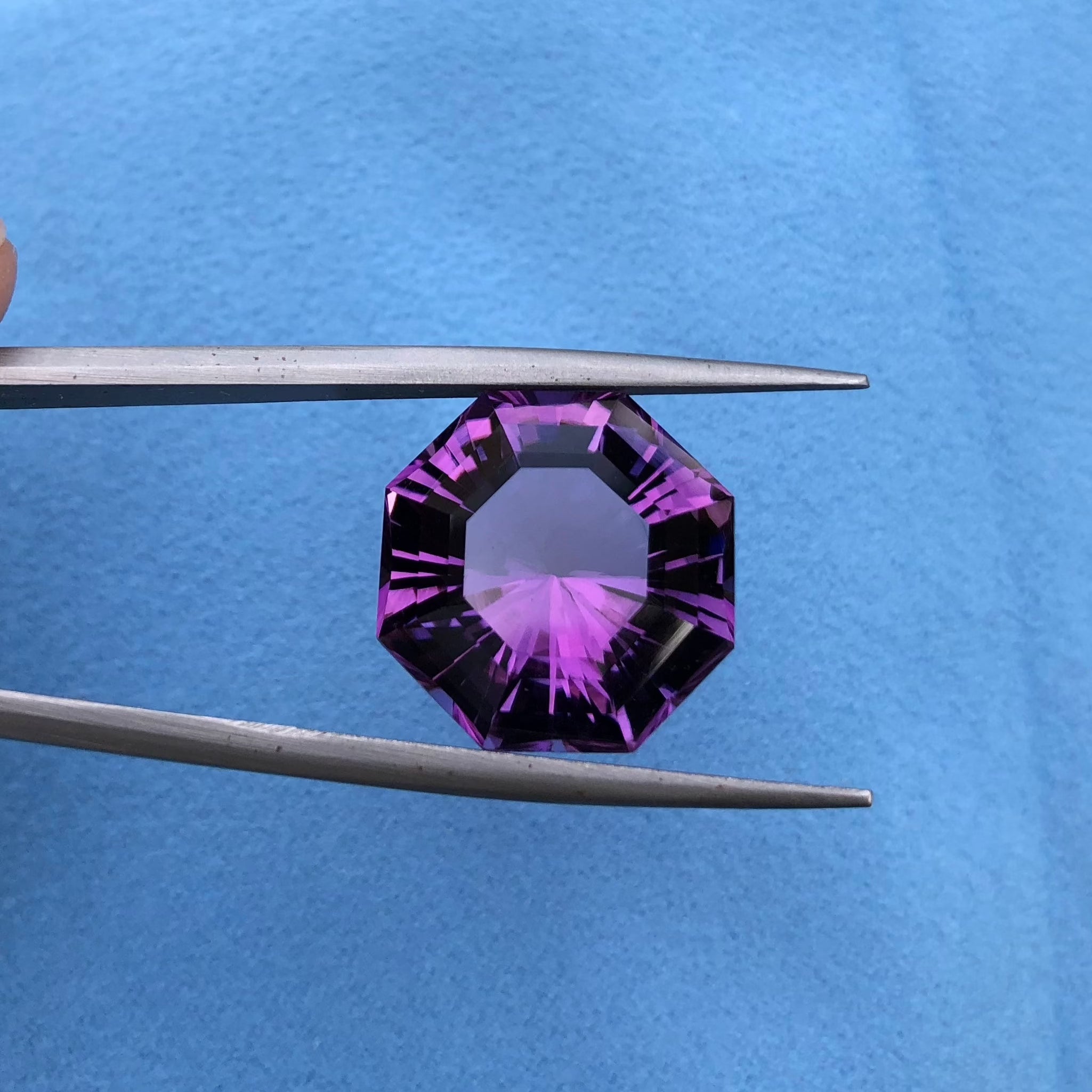 نقدم لكم حجر الجمشت الكريم المذهل، وهو كريستال ساحر ذو لون بنفسجي غني من المؤكد أنه سيأسر حواسك. هذا الحجر الكريم الجميل مثالي لأولئك الذين يبحثون عن حجر يتمتع بجاذبية جمالية وخصائص ميتافيزيقية قوية.