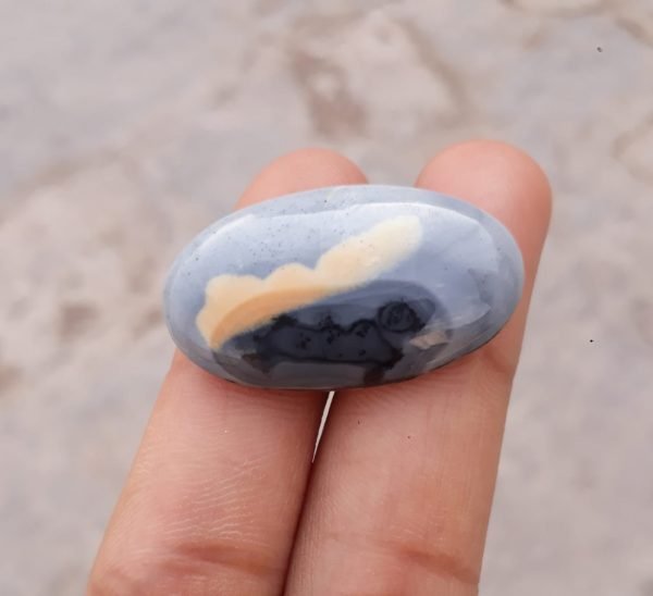 تم قطع هذا الكابوشون الفريد من نوعه من يشب ماليجانو الفاخر المعروف أيضًا باسم جاسبر ماليجانو، وهو نوع من اليشب ذو أنماط مميزة والكثير من مجموعات الألوان الجميلة. انها تأتي من المنطقة الاندونيسية.