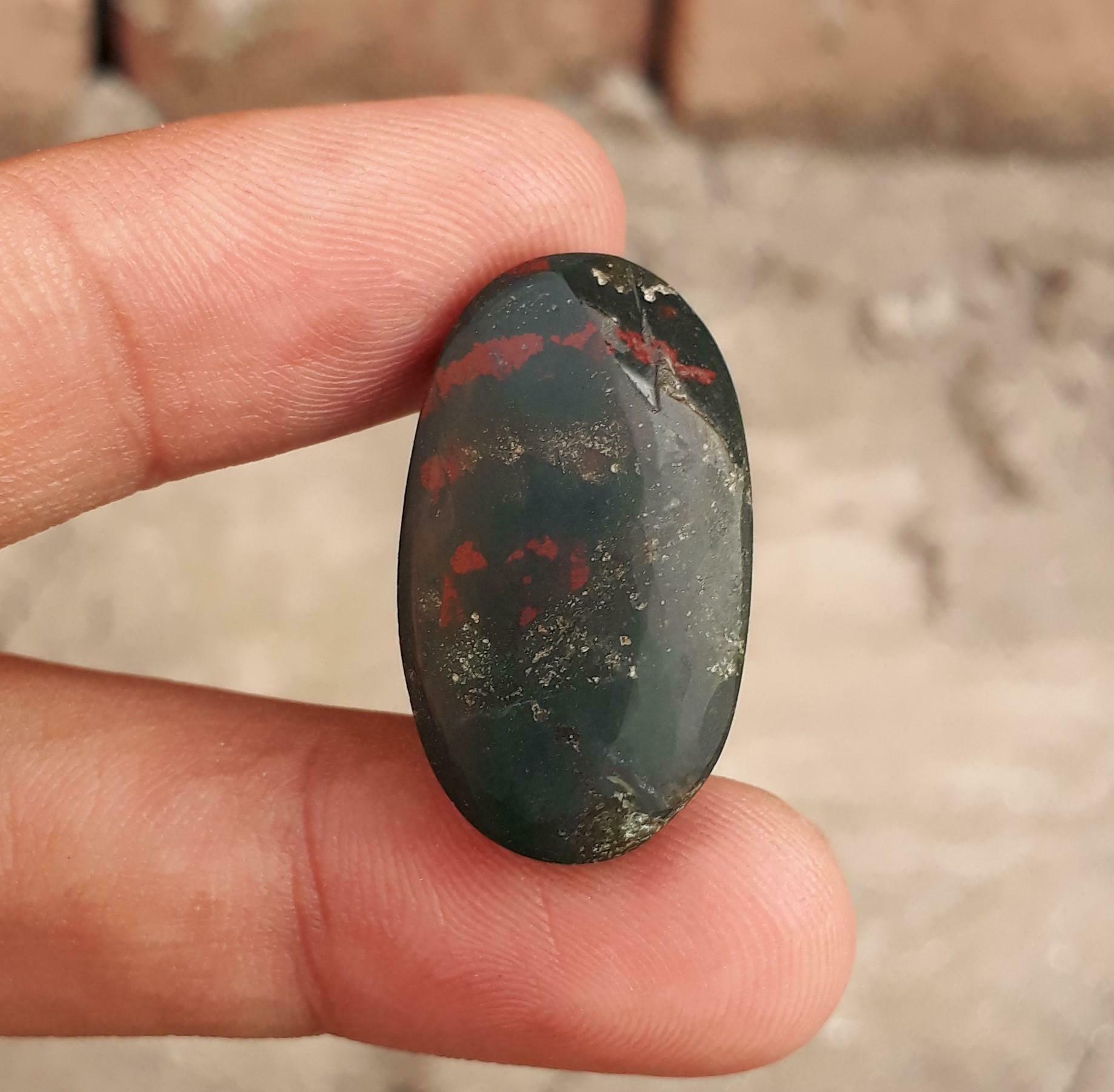 حجر دم طبيعي عالي الجودة 29.15 قيراط - الهليوتروب - الأبعاد - 24.6 × 17.3 ملم