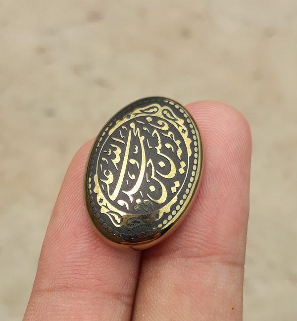 حجر حديد 39 قيراط - كابوشون حديد تشيني منقوش - 27 × 19 ملم