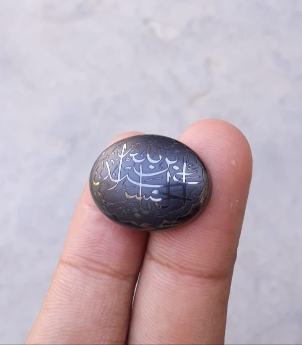يبلغ حجم جوهرة كابوشون الهيماتيت الجميلة هذه 18 × 25 مم وتتكون من الهيماتيت الطبيعي، المعروف على نطاق واسع باسم حديد تشيني في الثقافة الإسلامية. تتميز هذه الجوهرة، المنقوشة بآيات إسلامية تقليدية، بخصائص ترميمية وجمال آسر. أضفه إلى مجموعتك للاستفادة من القوة الروحية والشفائية للهيماتيت.