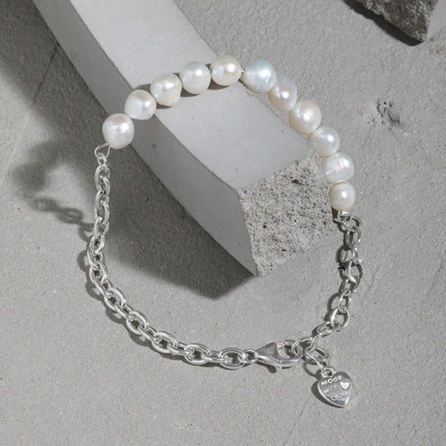 سوار سلسلة من اللؤلؤ الطبيعي غير المتماثل - سوار لؤلؤ فضي مطلي بالبلاديوم للنساء - سوار لؤلؤ مثالي مع تغليف الهدايا