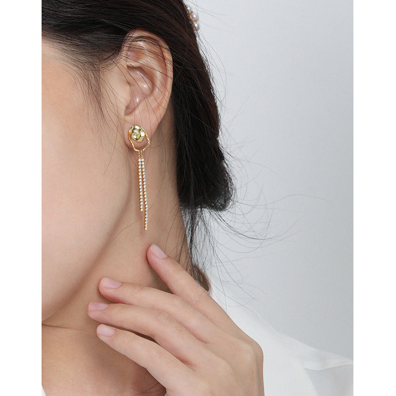 أقراط متدلية غير متماثلة من اللؤلؤ CZ - أقراط لؤلؤ فضية مطلية بالذهب للنساء - أقراط لؤلؤ مثالية مع تغليف الهدايا