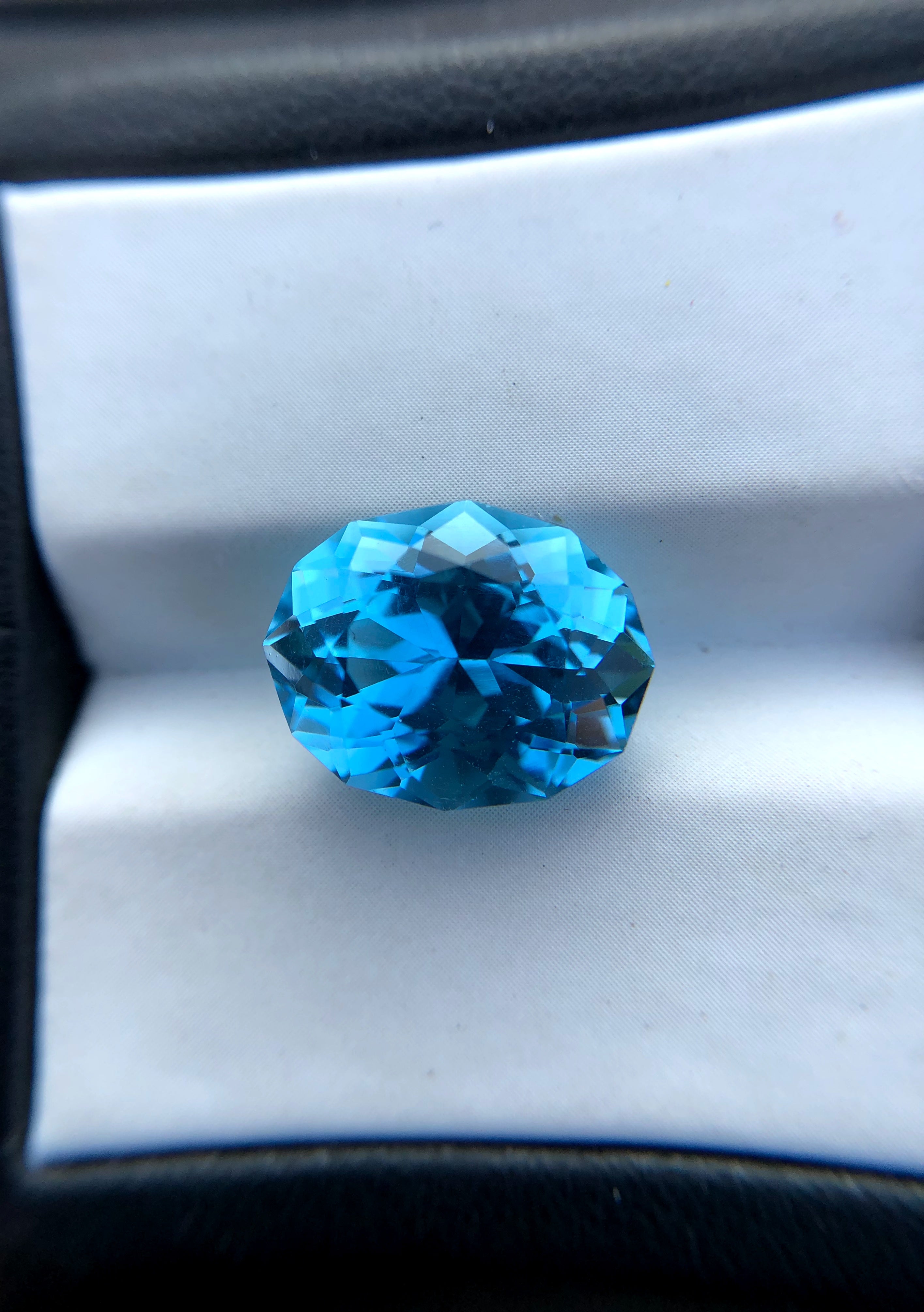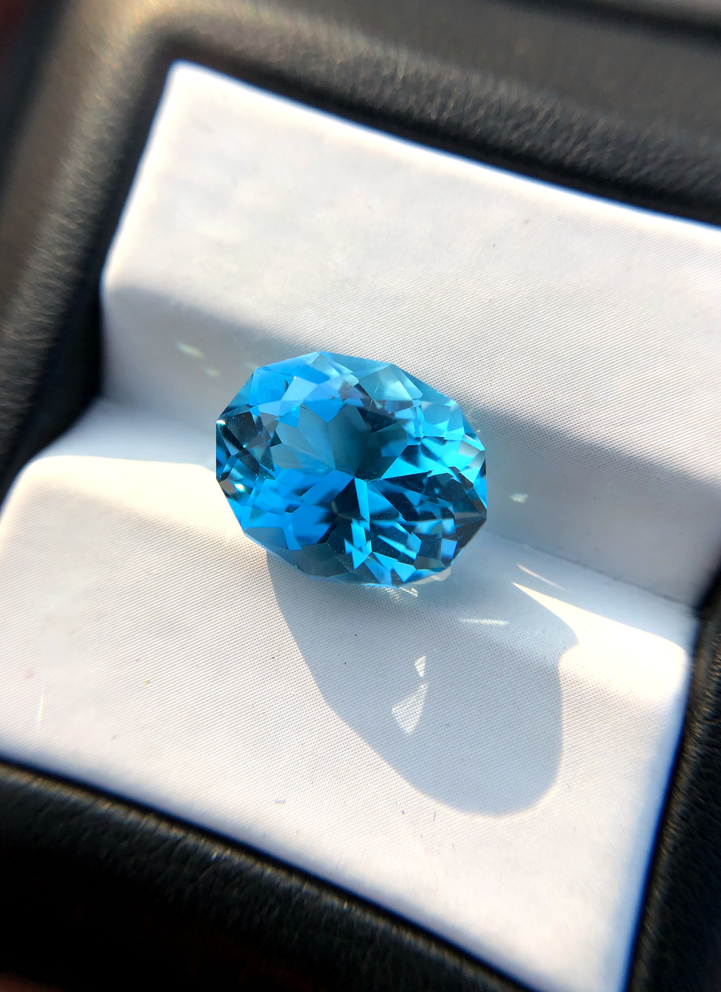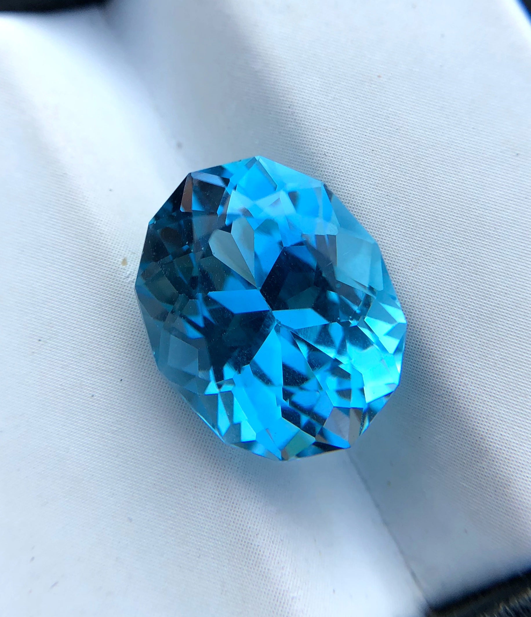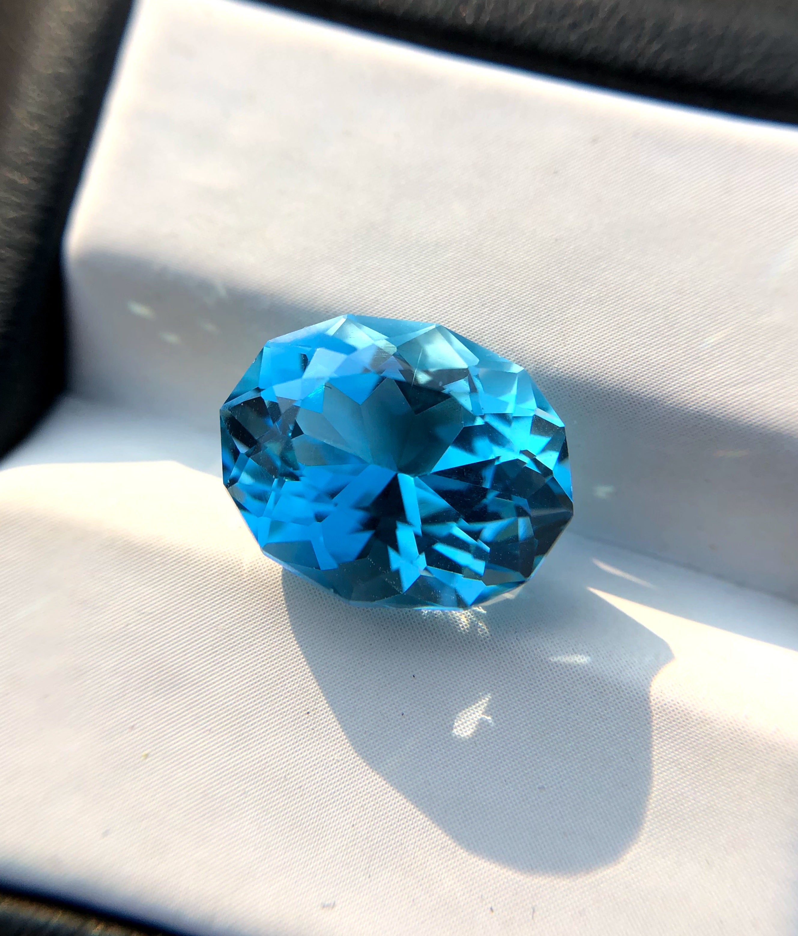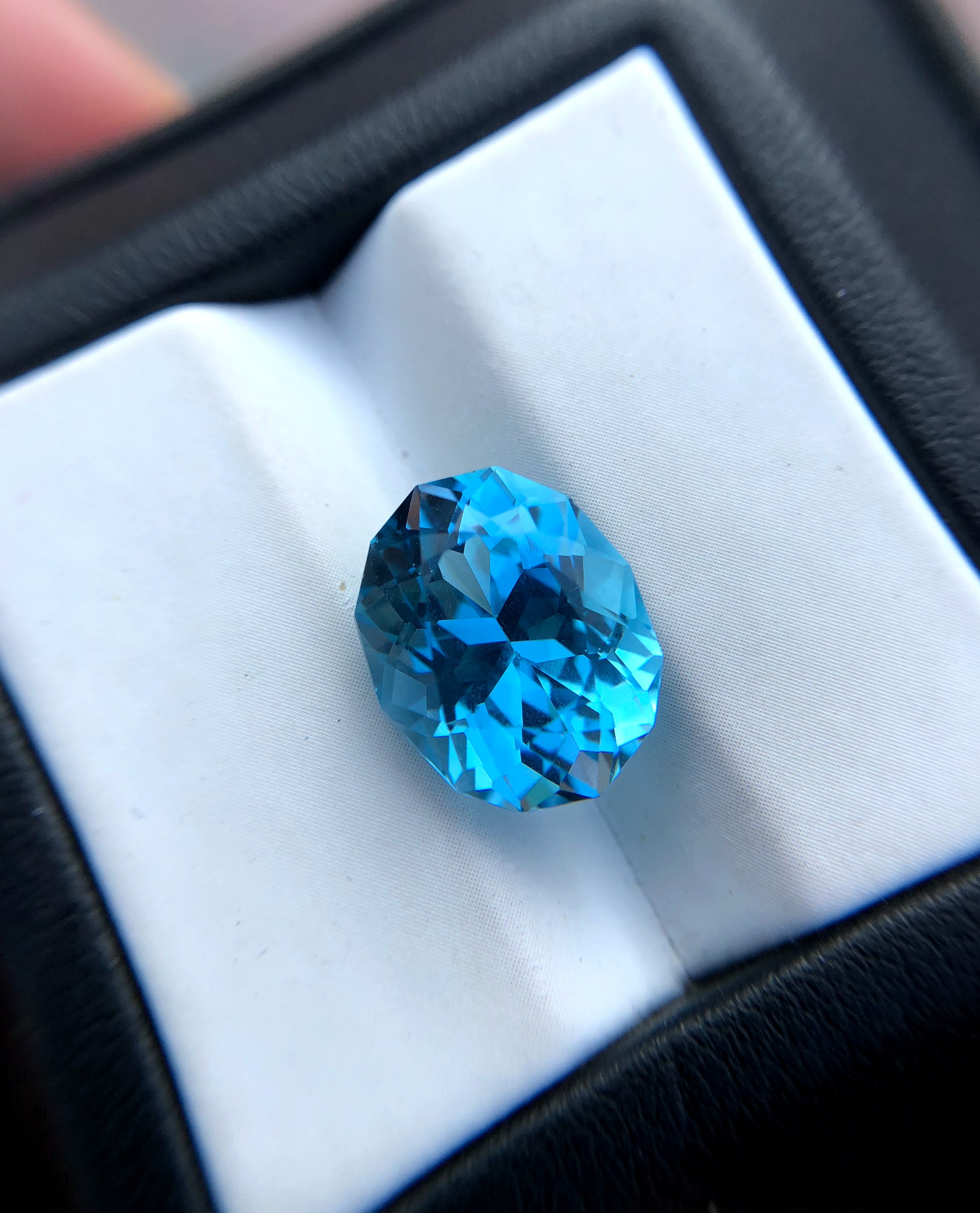 يتميز هذا التوباز الأزرق الرائع بقطعة أنيقة خلابة، تبرز لونه النابض بالحياة ونقائه الاستثنائي. مثالي لتصاميم المجوهرات المخصصة.