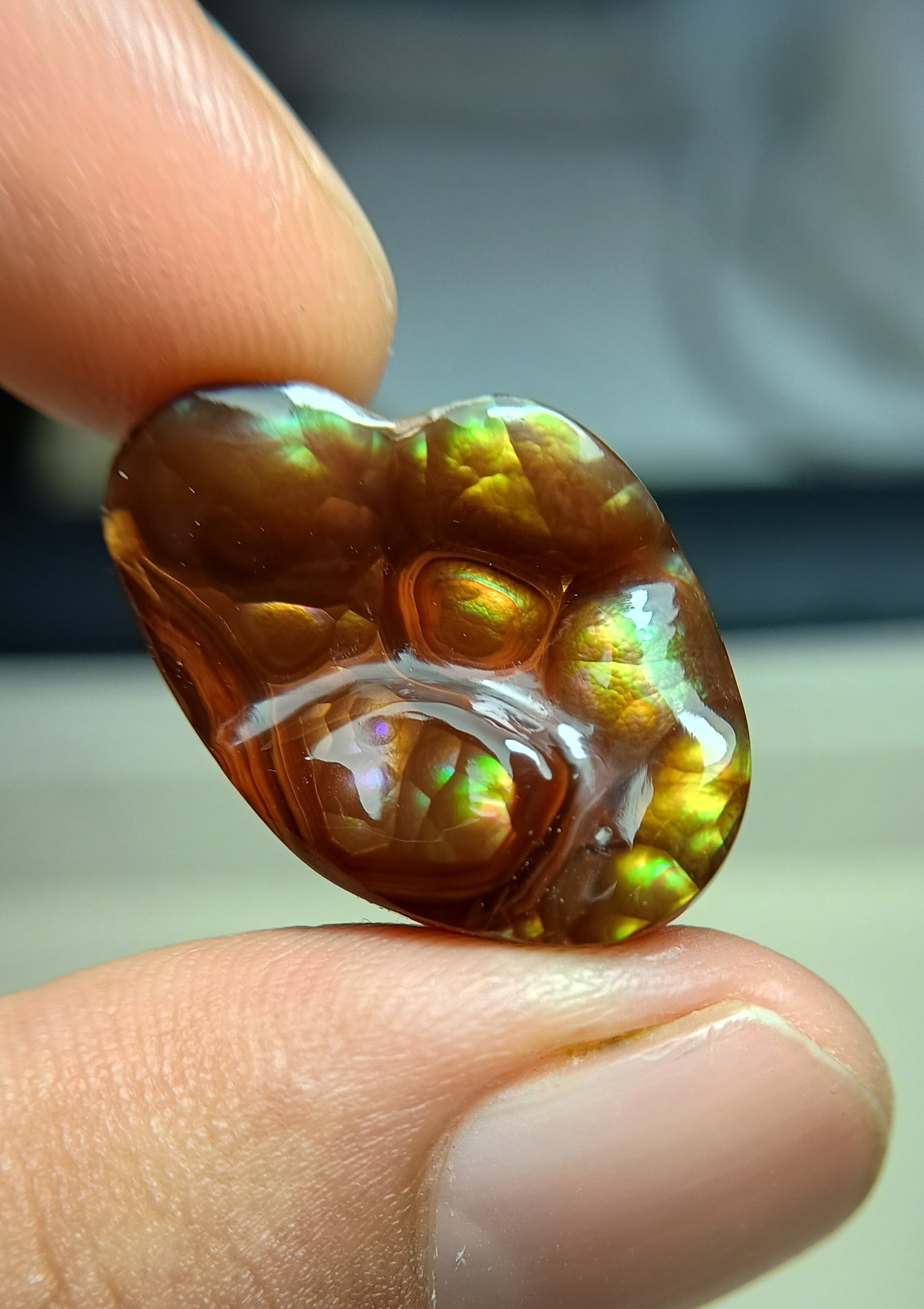 حجم الجوهرة: 23 × 16.5 × 6.8 ملم تقريبًا.