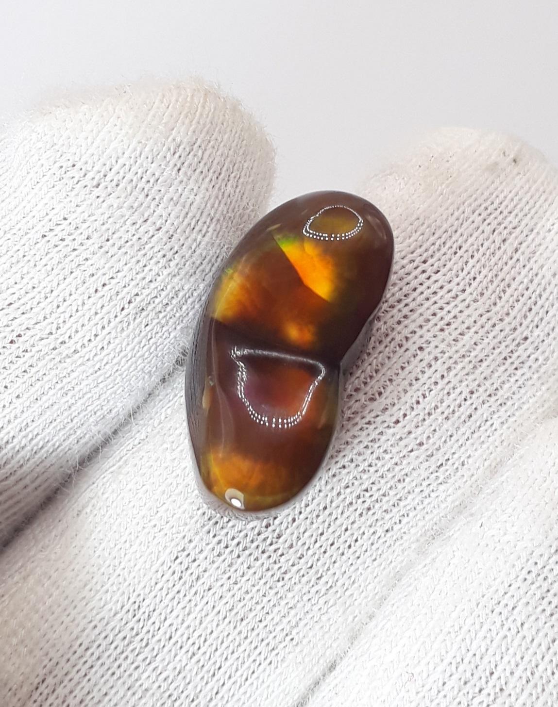 يعد هذا الحجر الكريم من العقيق الناري المكسيكي أحد أندر الأحجار الكريمة المتاحة، وهو أكثر ندرة حتى من الماس. العقيق الأصفر الطبيعي خام، ولكنه مصقول بأبعاد مثالية تبلغ 17.2 × 9 ملم للحصول على مظهر مبهر وفريد ​​من نوعه. اجعل هذا الحجر الكريم النادر والثمين الهدية المثالية!