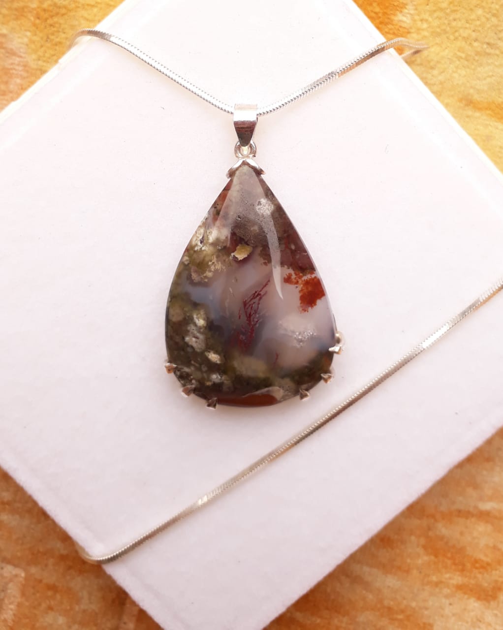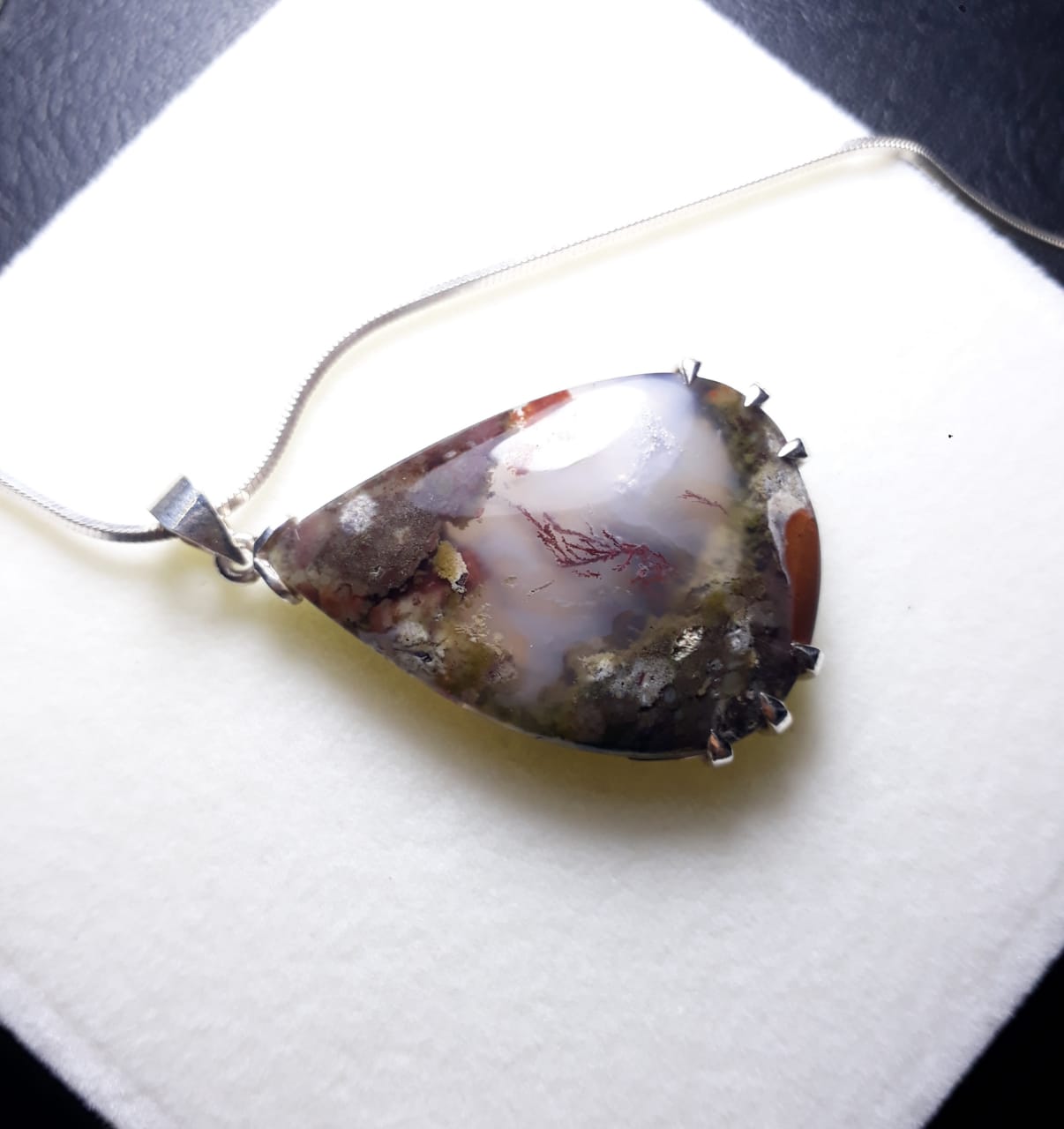 قلادة عقيق شجري اندونيسي (عقيق موس) مع سلسلة فضة ايطالية