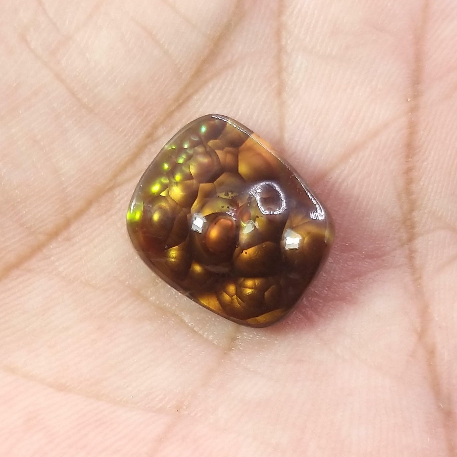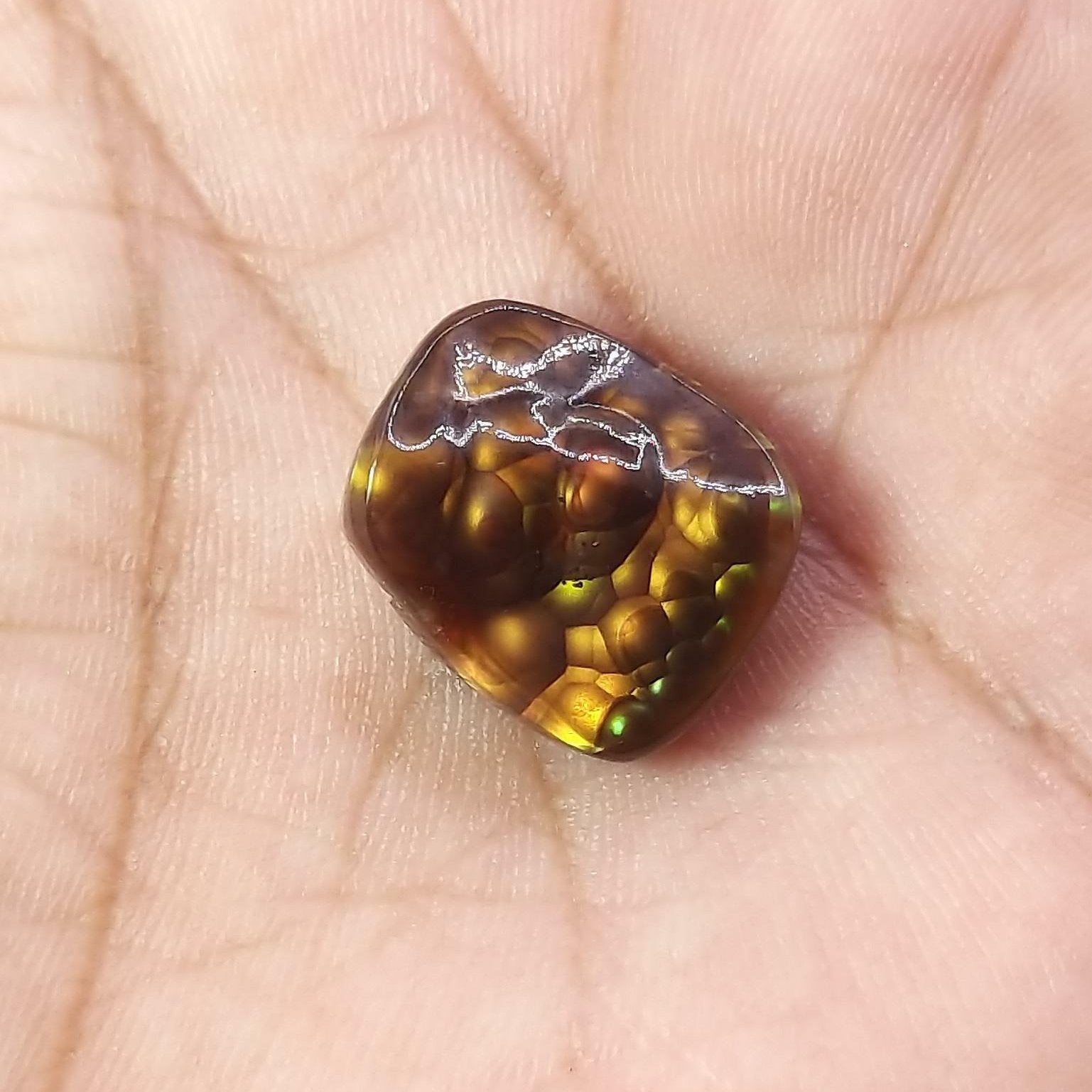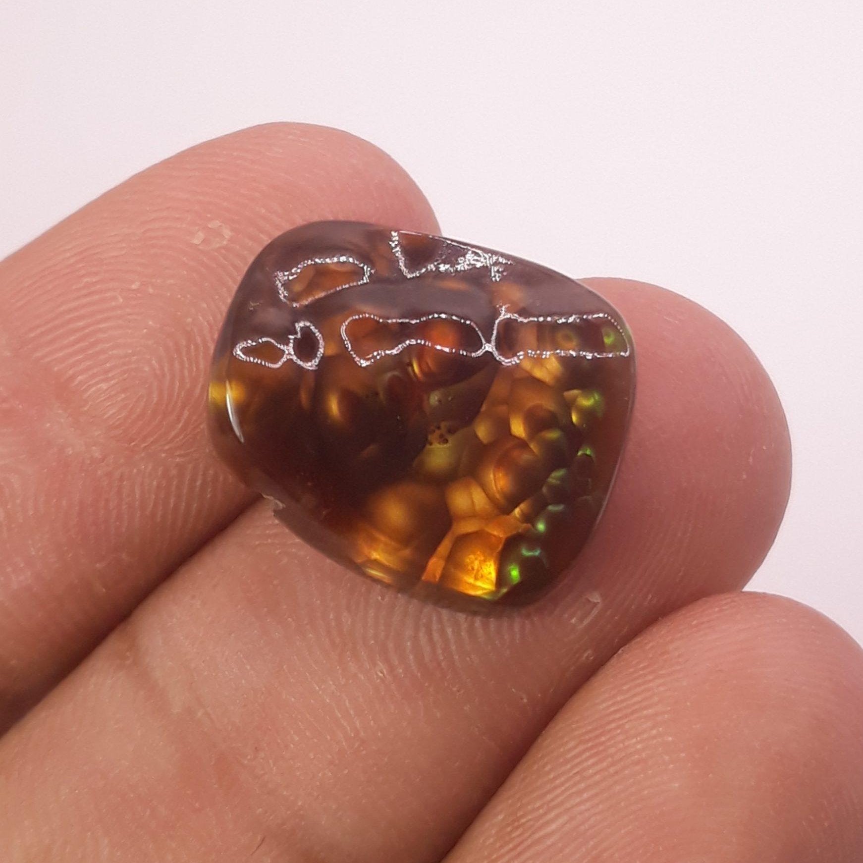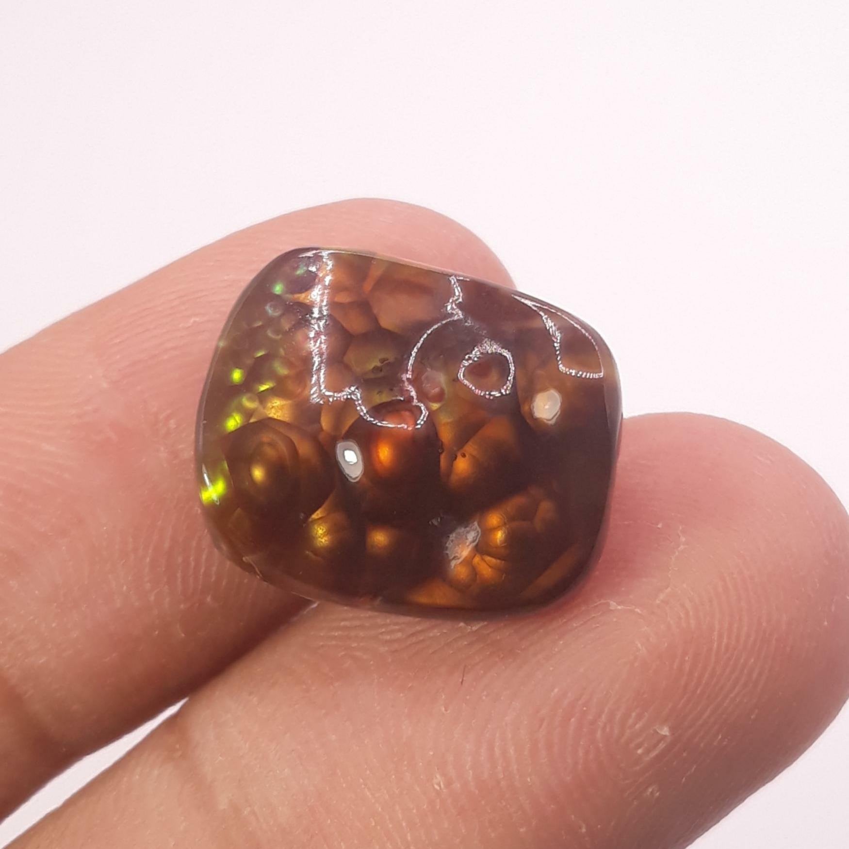 يعتبر عقيق النار المكسيكي هذا حجرًا كريمًا نادرًا سيثير الإعجاب بالتأكيد. مع العقيق الناري الأصفر الطبيعي والمصقول، يبلغ حجم هذا الكابوشون 17 × 14.4 ملم، وهو هدية فريدة من نوعها أندر من الماس. أظهر تطورك اليوم مع هذا الحجر الكريم المذهل.