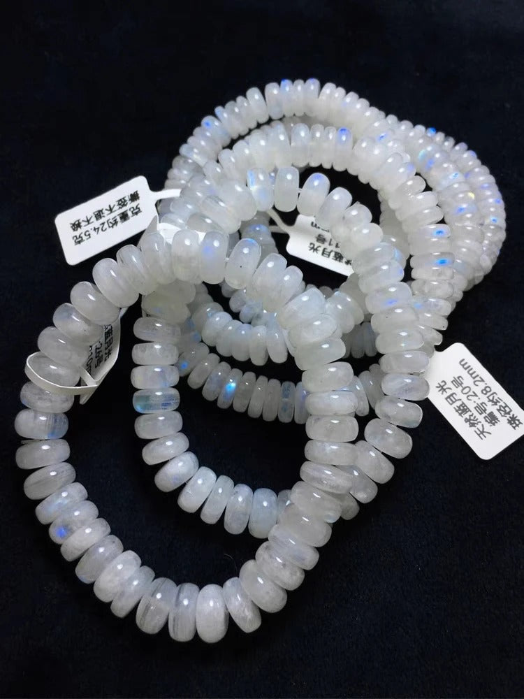 سوار حجر كريم من حجر القمر الطبيعي باللون الأزرق الفاتح، حجم الخرزة 8 ملم