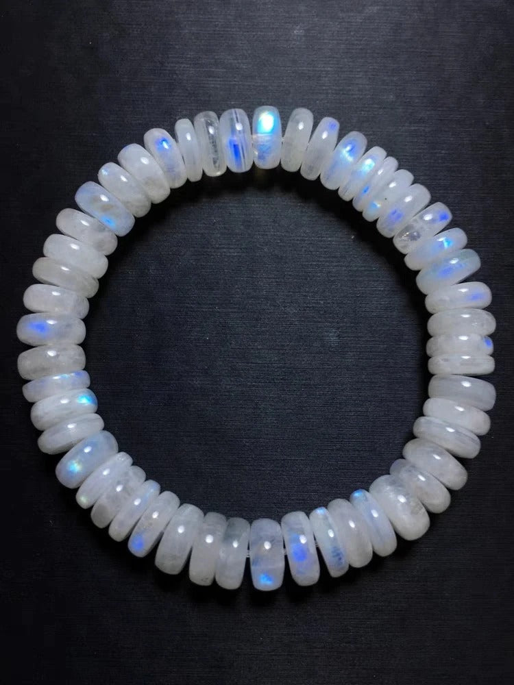 يتميز هذا السوار الجميل من حجر القمر الكريم ذو الضوء الأزرق الطبيعي بأحجار تتراوح في حجمها من 8 ملم، ومصنوعة بإتقان. يوفر الحجر الفريد الحماية من انبعاثات الضوء الأزرق الضارة، كما يوفر الحجم القابل للتعديل الراحة القصوى. والهدية المثالية لأية مناسبة!