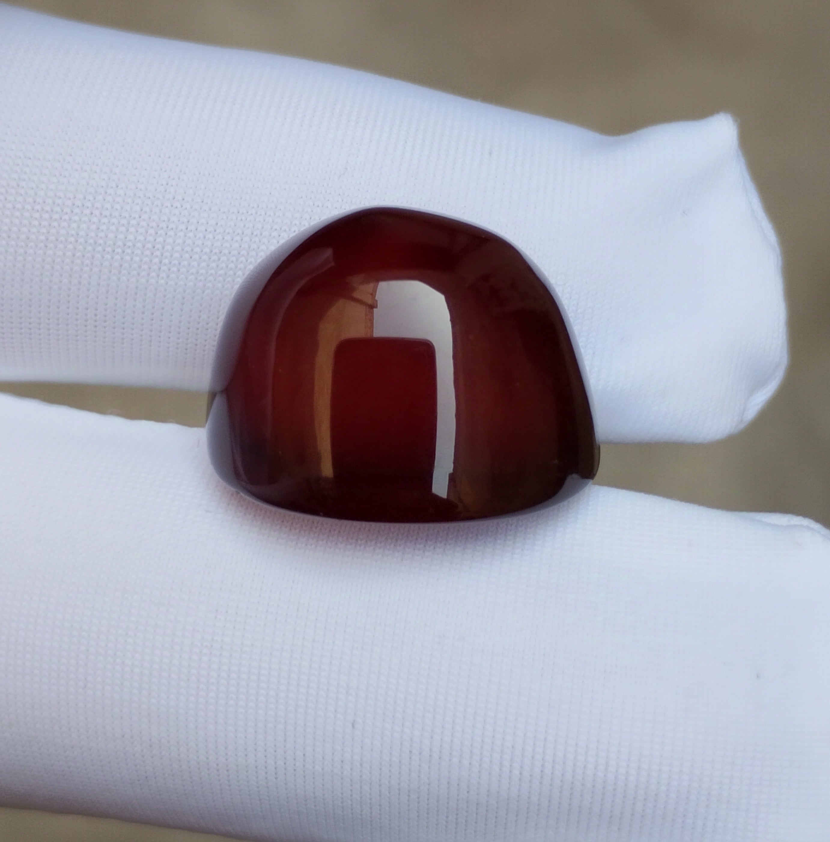 عقيق كبدي طبيعي من اليمن - كابوشون عقيق يماني بني غامق - 22 قيراط