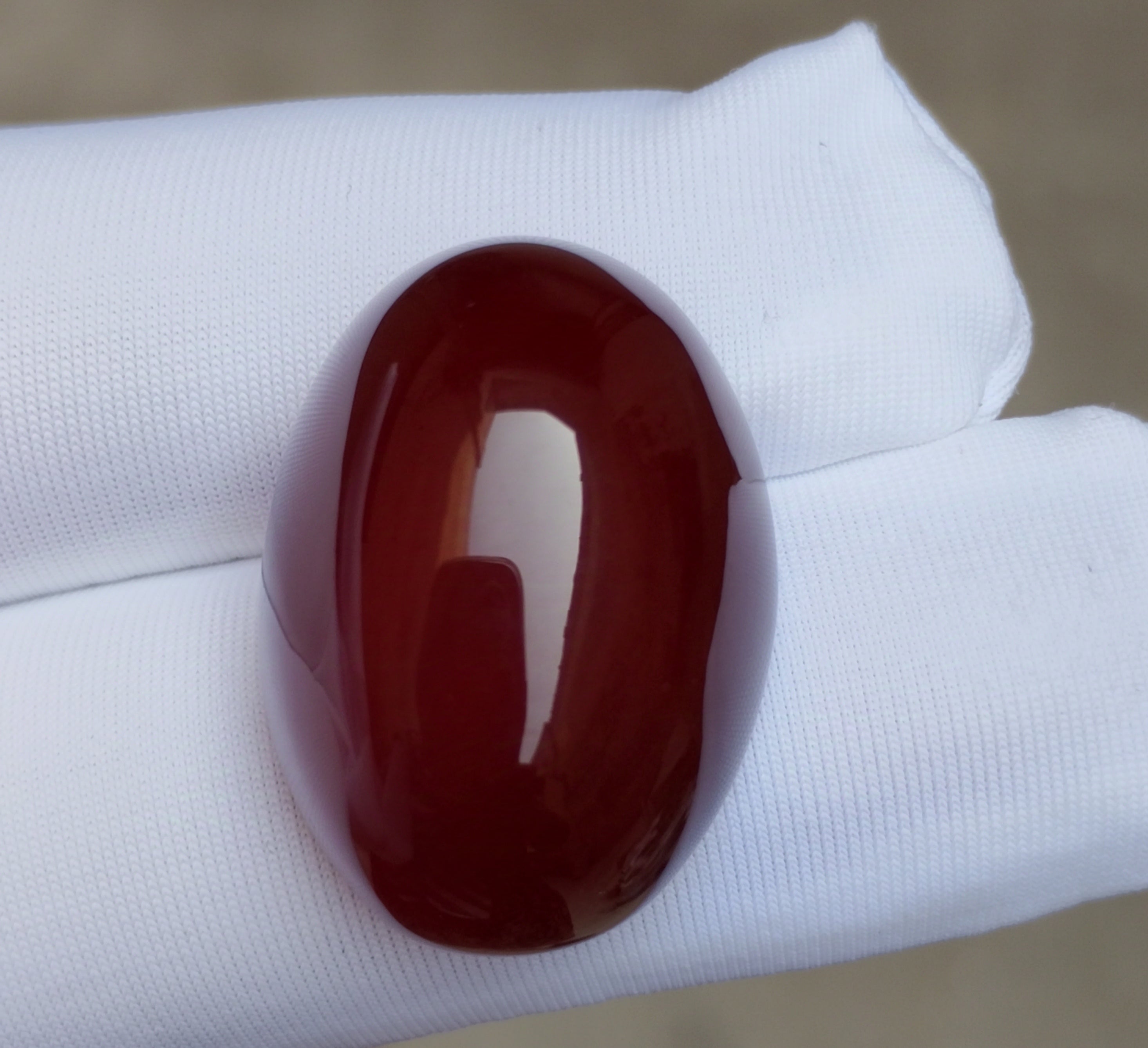 عقيق كبدي طبيعي من اليمن - كابوشون عقيق يماني بني غامق - 39 قيراط