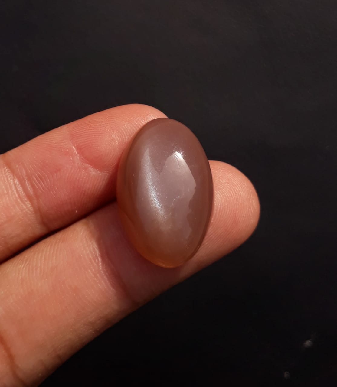 حجر القمر الطبيعي الخوخي - حجر القمر للبيع - حجر بخت شهر يونيو - كابوشون بيضاوي - 24x10 ملم