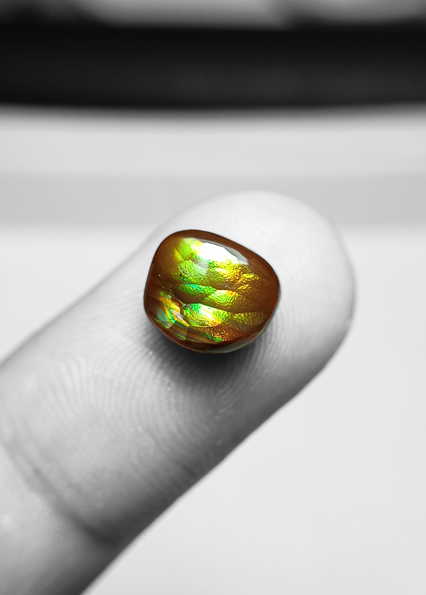 حجم الجوهرة: 9.1 × 8 × 4.6 ملم تقريبًا.